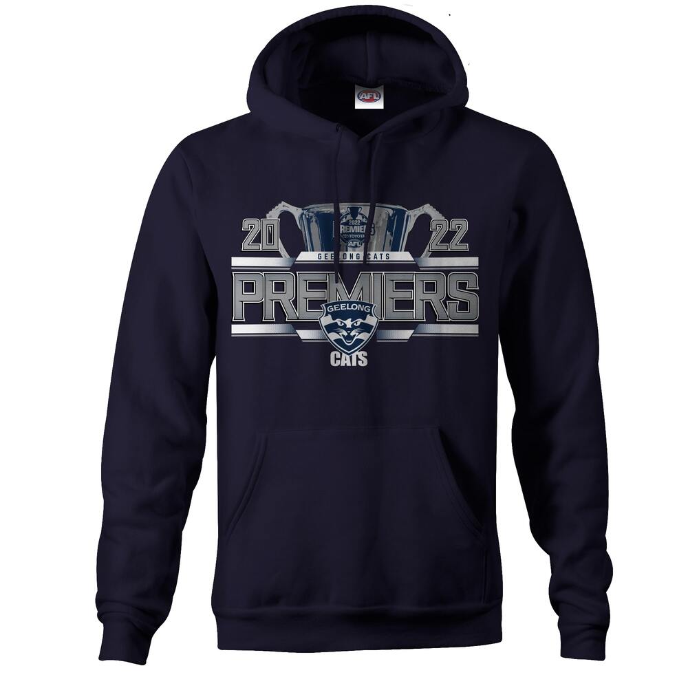 Celebrate the Cats Grand Final victory with this fantastic Geelong Cats 2022 Premiership Hoodie.