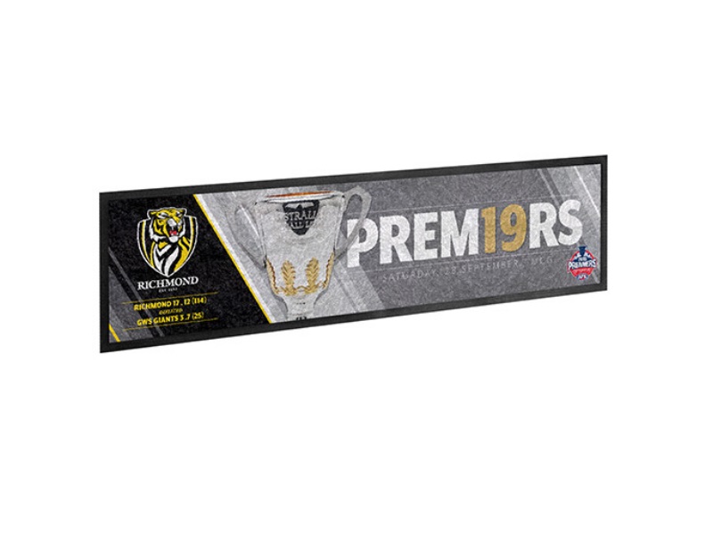2019 Grand Final Merchandise – 25x90cm Bar Runner with premiers design – 100% polyester surface with a nitrile rubber backing – Official AFL Merchandise